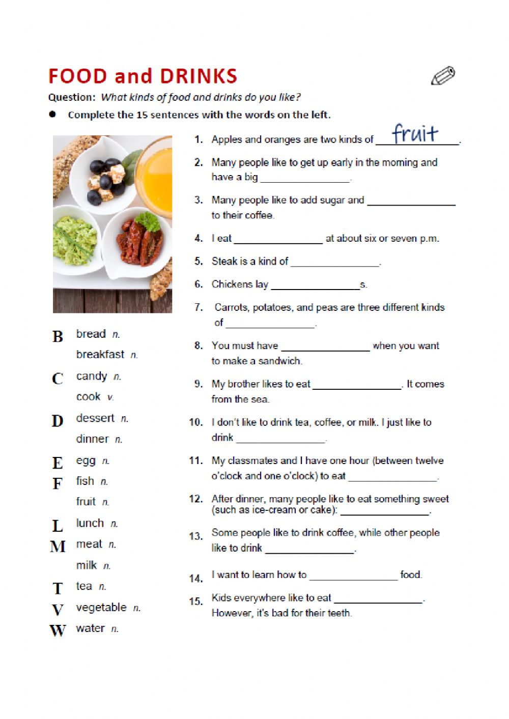 FOOD AND DRINKS - UNIT 2 - VOCABULARY