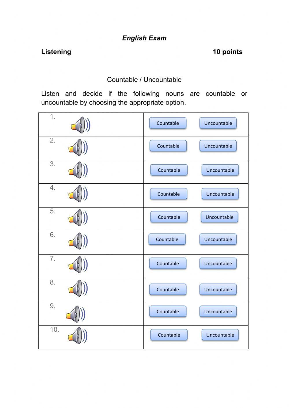 Listening -Countable - Uncountable